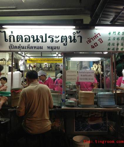 หากคุณผ่านไปแถวประตูน้ำ ลองเดินแวะไปเฉียดร้านนี้ กลิ่นหอมของน้ำซุป จะชวนให้คุณต้องเดินเข้าตามกลิ่นเข้ามาต่อคิวเพื่อรอลิ้มลอง "ข้าวมันไก่" อย่างแน่นอนค่ะ ของแบบนี้ต้องลองกันเองนะคะ ลองซะ แล้วคุณจะติดใจ!